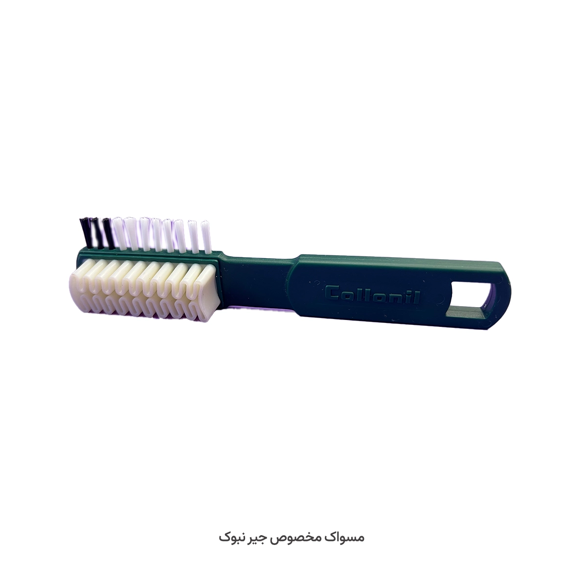 حالا که حساسیت این جنس‌ها رو درک کردید، وقتشه بهترین راه‌حل رو بشناسید: مسواک مخصوص جیر و نبوک Collonil. این محصول، یه ابزار بی‌نظیر برای پاک‌سازی و مراقبت از کفش‌ها، کیف‌ها و هر وسیله‌ایه که از جنس جیر یا نبوک ساخته شده باشه. با استفاده از این مسواک می‌تونید: